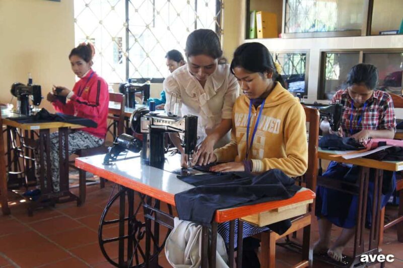 The sewing machine is very important in Battambang. After all, it is an important tool for a future source of income. The Safe House is currently training the third cohort of apprentice tailors. This year, 18 girls are attending the one-year tailoring course at Safe House. Thanks to this training, many girls have already found a job. In addition, the Safe House has already financed three tailoring workshops, i.e. sewing machines, mirrors, fabric and sewing utensils have been provided so that the girls can open tailoring workshops in their home villages.