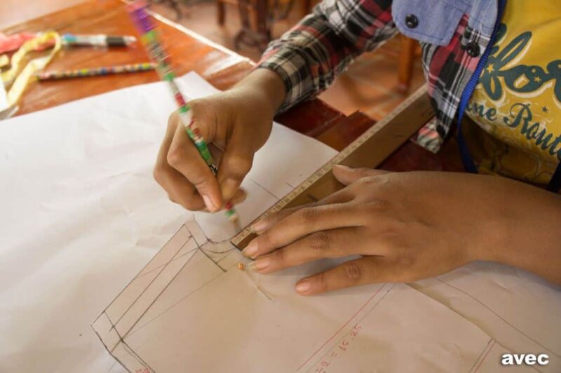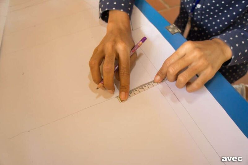 Drawing patterns also needs to be learned and practiced. The ability to draw a pattern and work accurately is an important part of training as a seamstress.