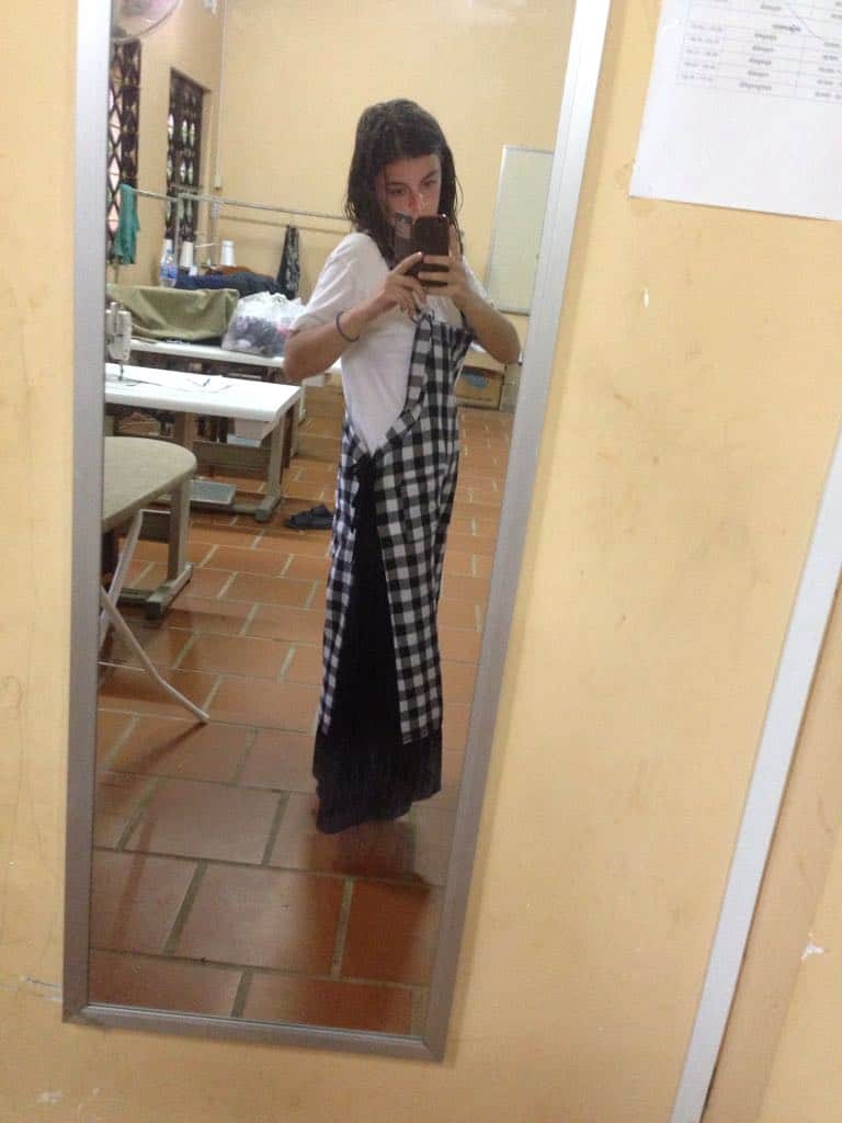 Gabrielle fuhr dann gemeinsam mit Sophan in die Hauptstadt Phnom Penh, um das Land, die Kultur, die Landschaft und die Menschen Kambodschas besser kennen zu lernen. Darüber hinaus waren sie dort auch auf der Suche nach Stoffen.